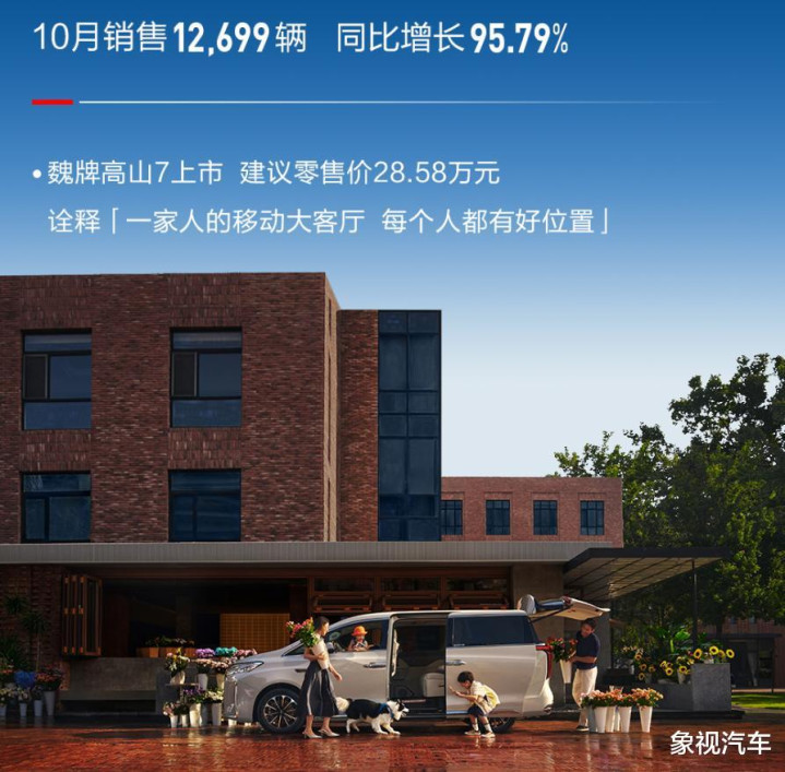 今年10月份,魏牌热销12699台,同比暴涨95.79%;前10个月累计售出76292台,同比暴涨96.25%。